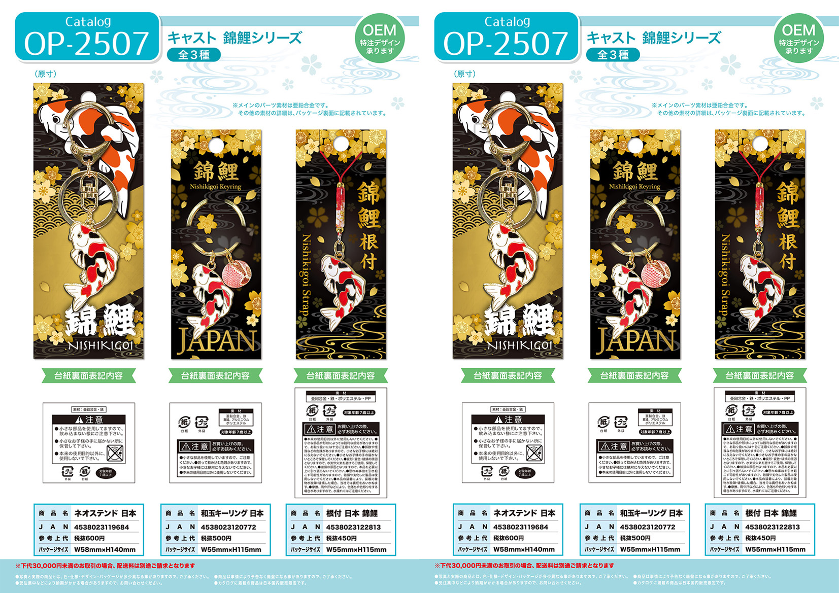 一 般 商 品 カ タ ロ グ 画像をクリックすると詳細がご確認いただけます OIP-2501-2503(全3ページ) 2025年9月 OP-2507-2520(全14ページ) 2025年9月 OP-2501-2506(全6ページ) 2025年3月 OP-2411-2417(全7ページ) 2024年10月 OP-2410(全1ページ) 2024年9月 OP-2401-2409(全9ページ) 2024年3月 OP-2310-2314(全5ページ) 2023年10月 OP-2309(全1ページ) 2023年7月 OP-2301-2308(全8ページ) 2023年2月 OP-2212-2218(全7ページ) 2022年9月 OP-2208-2211(全4ページ) 2022年5月 OP-2201-2207(全8ページ) 2022年2月 OP-2101-2131(全11ページ) 2021年7月 マリン総合カタログ2021(全4ページ) 2021年7月 OP-2023-2035(全4ページ) 2020年9月 アマビエ商品のご案内(全2ページ) 2020年6月 ファンシーカタログ-柴犬 2020年2月 OP-2001-2022-1801-1802 & ディスプレイ(全25ページ) 2020年2月 OP-1932-1962 & ディスプレイ(全32ページ) 2019年9月 OP-1926-1931 & ディスプレイ(全7ページ) 2019年6月 OP-1901-1925 & ディスプレイ(全26ページ) 2019年2月 ※申し訳ございませんが、事業者向けカタログのため 個人のお客様への販売はしておりません。ご了承ください。